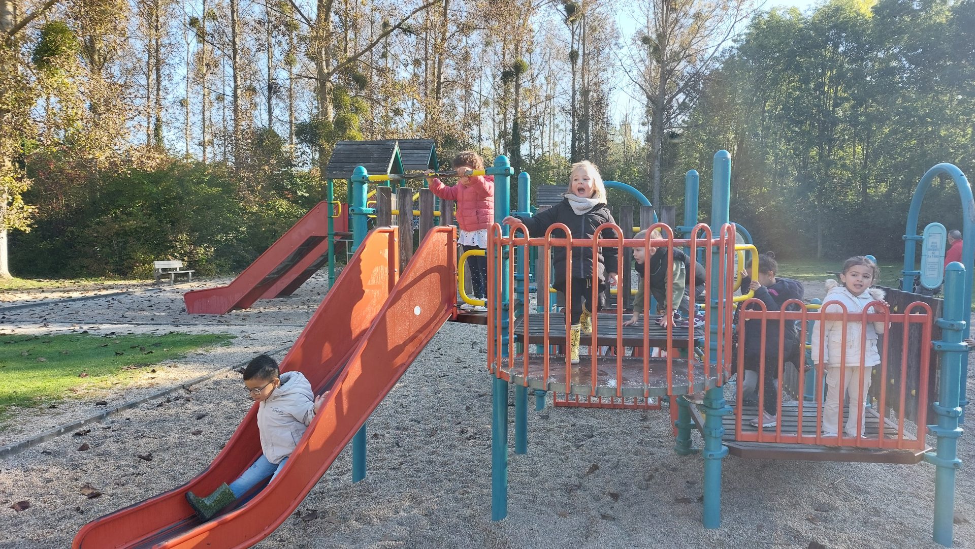 Début octobre, les classes de TPS-PS et PS-MS sont allés à la Forêt d’Ifs. Trajet en tramway, promenade dans les bois, observation des terriers, jeux dans les structures !