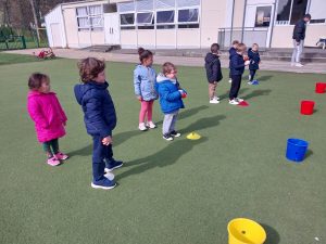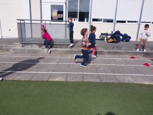 Les élèves de Moyenne section font du sport tous les lundis de cette 4ème période avec les éducateurs sportifs de CAP SPORT. Au programme : l’athlétisme: courses, lancers, sauts…