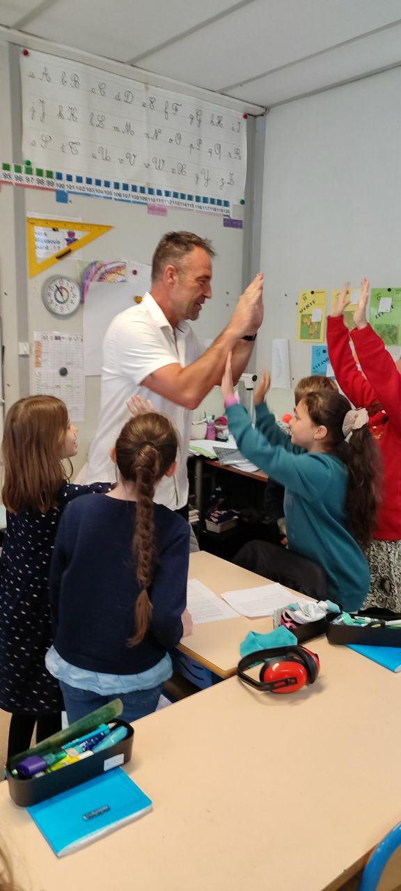 A l’occasion de la dictée d’ELA pour l’association ELA, les ce1-ce2 ont reçu la visite de Romuald Lafitte. Il a participé 2 fois à Koh Lanta et a gagné en 2009 lors de sa 2ème participation. Il est venu parlé aux enfants de dépassement de soi, de la nécessité de faire des efforts pour obtenir ce que l’on souhaite dans la vie…